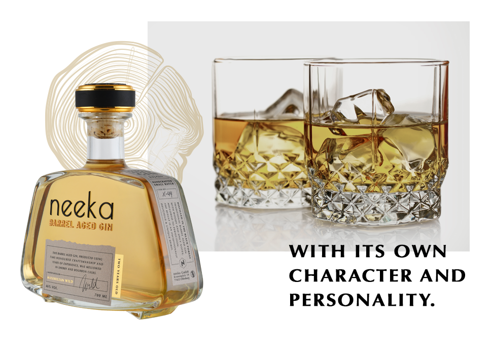 The neeka BARREL AGED GIN, produced using time-honoured craftsmanship and years of experience, was mellowed in sherry and bourbon casks for two years and is created from a base of neeka CLASSIC tangerine gin. Barrel stored to perfection with woody and spicy notes and a touch of caramel flavour. The result is an exceptionally delicious and unique spirit – handmade with love in the Black Forest.