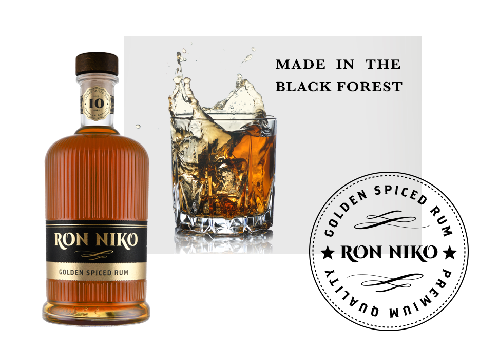 RON NIKO ist die neue Rum-Marke von neeka PREMIUM SPIRITS mit einer Reifezeit von 10 Jahren. Durch diese lange Reifezeit und die Lagerung in großen, nicht vollständig entleerten Portwein-Fässern entsteht ein authentischer Premium-Rum der Extraklasse - MADE IN THE BLACK FOREST.